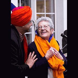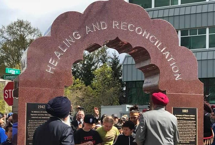 A celebration around The Arch of Healing and Reconciliation. The arch is a reminder of the past and bridge toward the future. The Chardi Kala Project Courtesy to The Bellingham Herald